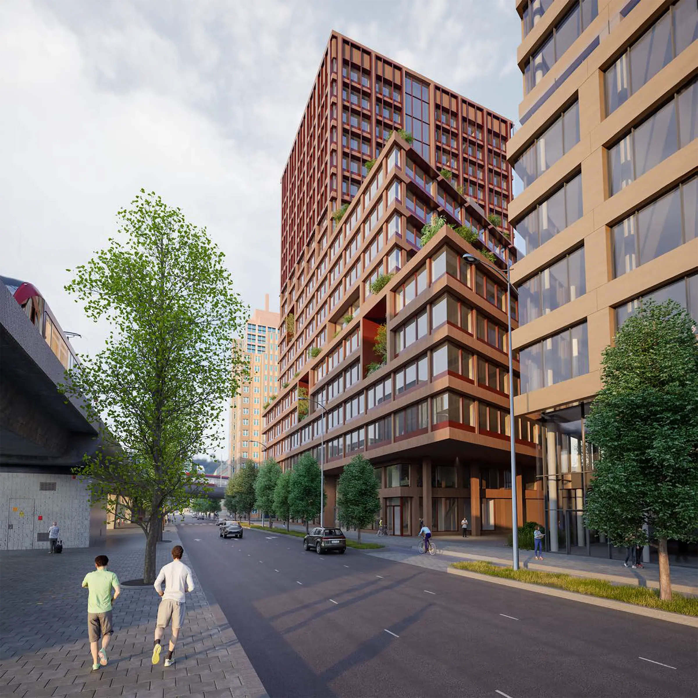 Opvallend aan het project is de keuze voor houtbouw. Het 76 meter hoge gebouw krijgt een draagconstructie, vloeren en mogelijk ook kernen van hout, gemaakt door Binderholz, de Europese marktleider in houtbouw en strategisch partner van BAM voor houtbouwprojecten. Die aanpak moet de ecologische voetafdruk flink verkleinen ten opzichte van traditionele bouw. Daarboven komt een systeem voor natuurlijke ventilatie, het zogeheten EWF-klimaatconcept, dat het binnenklimaat regelt zonder zware installaties, wat zowel energie bespaart als het comfort voor gebruikers verhoogt. Het biophilic design, waarbij natuurlijke elementen worden geïntegreerd in het gebouw, samen met daglicht en natuurlijke materialen, maakt het pand tot een gezonde en uitnodigende werkomgeving.